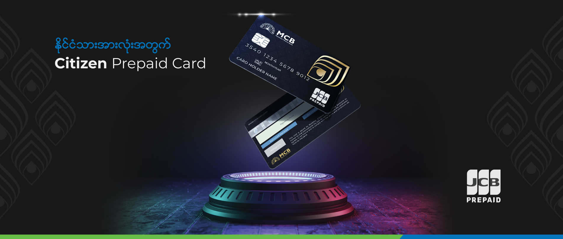 MCB JCB Prepaid Card သည် Saving သို့မဟုတ် Current account နှင့် ချိတ်ဆက်ပြီးအသုံးပြုစရာမလိုသည့် Wallet အမျိုးအစားဖြစ်ပါသည်။ Customer သည် Bank Account ဖွင့်ရန်မလိုအပ်ပါ။