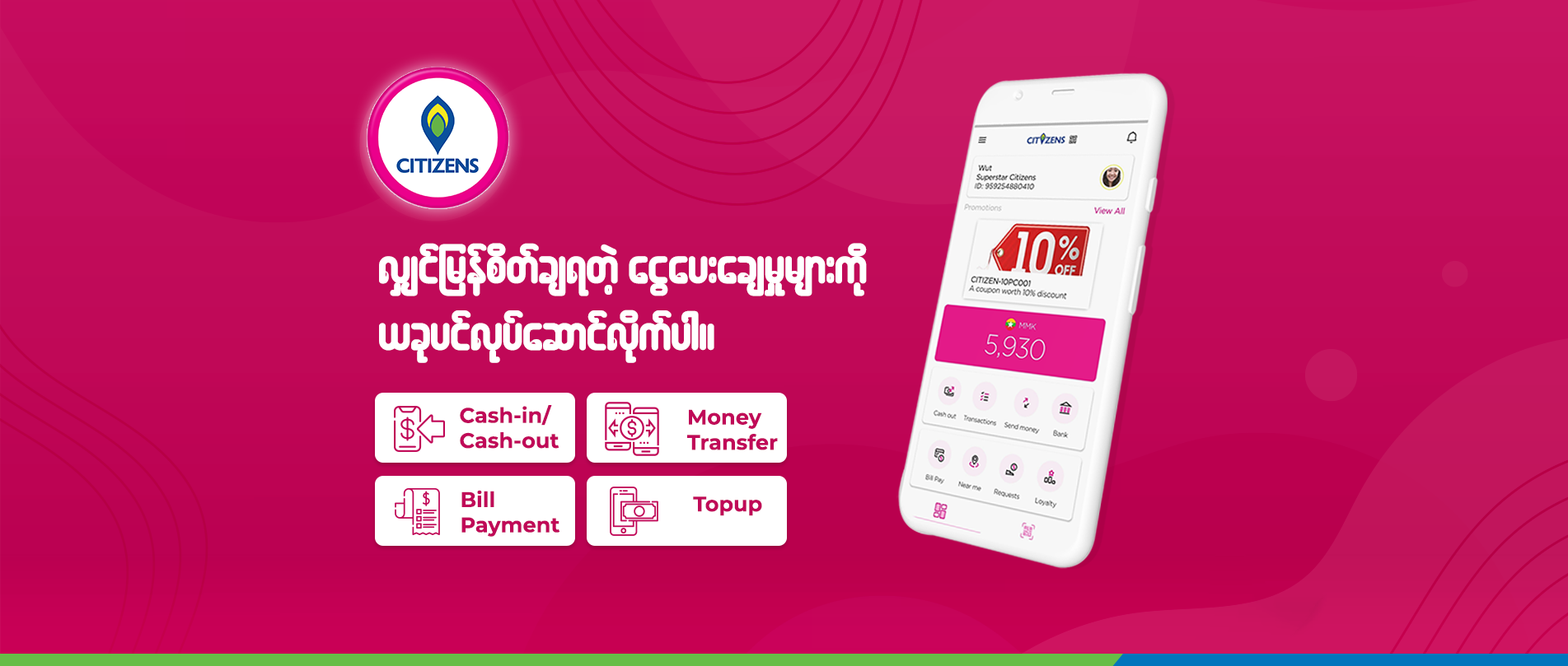 Citizens Wallet ဆိုသည်မှာ နေ့စဉ်လူနေမှုဘဝတွင် ငွေပေးချေမှုကို ပိုမိုလွယ်ကူချောမွေ့စေရန်နှင့် လိုက်လျောညီထွေဖြစ်စေရန်သာမက အသစ်အသစ်သော အခွင့်အလမ်းများကိုပါ ရယူနိုင်ရန် ကူညီပေးနေသော မိုဘိုင်းငွေပေးချေမှုတစ်ခုဖြစ်ပါသည်။ အသုံးပြုသူများသည် နေရာတိုင်းသို့ငွေလွှဲပြောင်းခြင်း၊ ငွေပေးချေမှုများ ပြုလုပ်ခြင်း၊ အွန်လိုင်းတွင်ဈေးဝယ်ခြင်း၊ ဖုန်းဘေလ်နှင့် အင်တာနက်ဘေလ်များ ပေးဆောင်ခြင်းတို့ကို မိမိအိမ်၌ပင် ပြုလုပ်နိုင်ပါသည်။ အင်တာနက်လိုင်းများကျခြင်းနှင့် အခြားပြဿနာများဖြစ်ပေါ်ချိန်၌ပင် E-money လွှဲပြောင်းမှုများကို လက်ငင်းလုပ်ဆောင်နိုင်ပါသည်။