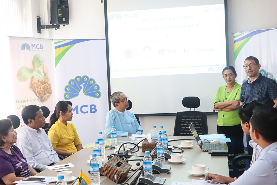 On 23th and 29th May 2019, representatives from Myanmar Citizens Bank signed MOUs with Mandalay Yoma Co., Ltd, More Than Water (MTW) Engineering and Trading Co., Ltd, Royal Htoo Linn Manufacturing Co., Ltd, Myanmar Water Engineering and Products Co., Ltd, MAST Myanmar Technology Co., Ltd, SOLARISES SYSTEM Co., Ltd and Indigo Energy under the EU Switch Asia Project, “Catalyzing Sustainable Water and Energy Management in Food & Beverage Industries in the Ayeyarwady River Basin” at Myanmar Citizens Bank.
